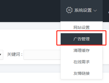 首先登錄盛世互聯(lián)后臺(tái)系統(tǒng),點(diǎn)擊右上角系統(tǒng)設(shè)置,選擇廣告管理