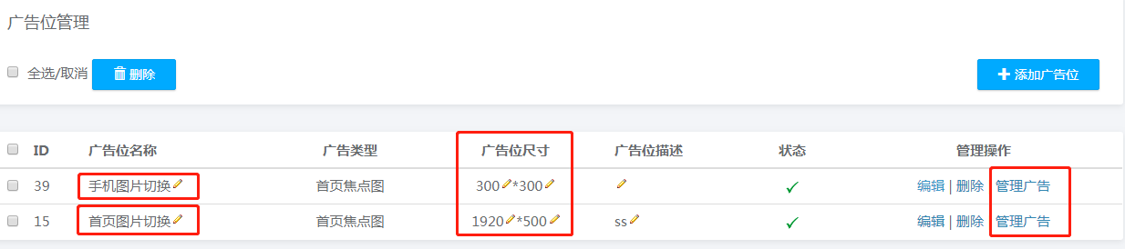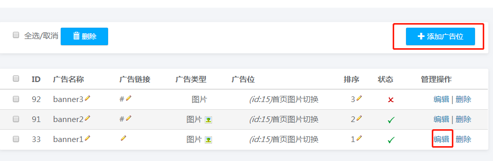可以選擇添加廣告位,也可選擇編輯,替換當(dāng)前的banner,上傳與提示尺寸相同的banner圖即可
