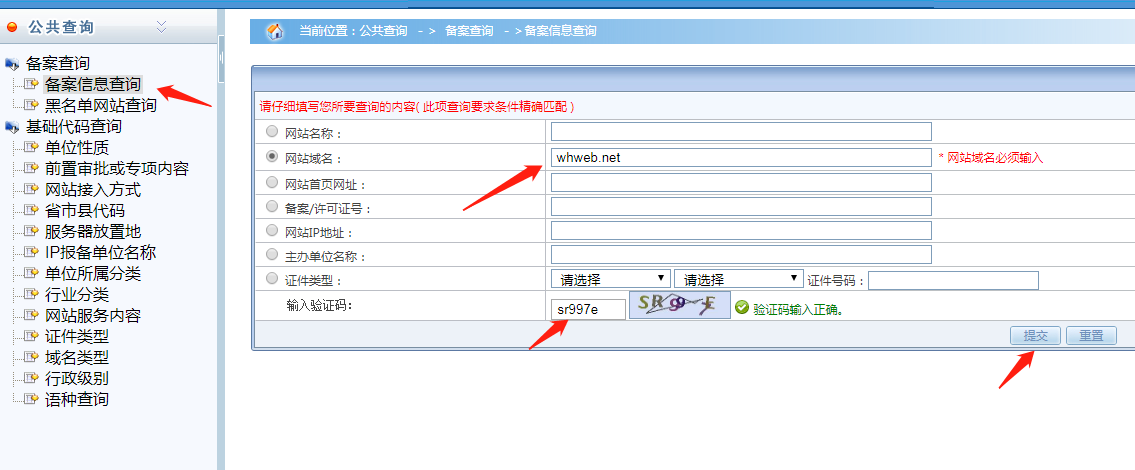 進(jìn)入公共查詢后選擇備案信息查詢,輸入任意一條信息,在輸入驗證碼,提交便可得到查詢結(jié)果。